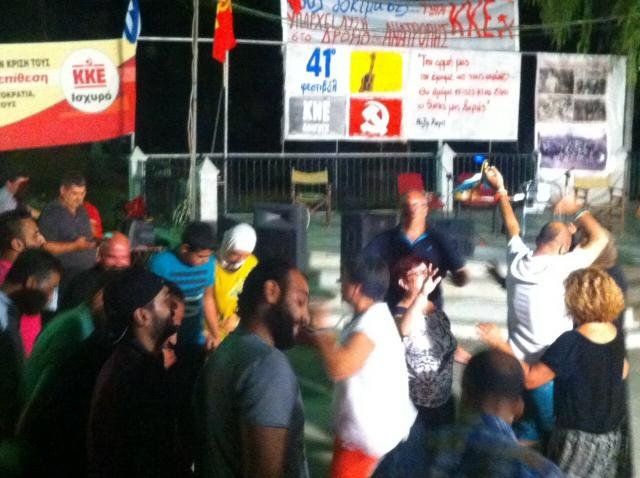 Τέλος οι μετανάστες θέλοντας να ευχαριστήσουν τα μέλη της ΚΝΕ και του ΚΚΕ για την συμπαράσταση και και τον αγώνα τους βοήθησαν στο ξεστήσιμο του φεστιβάλ.