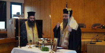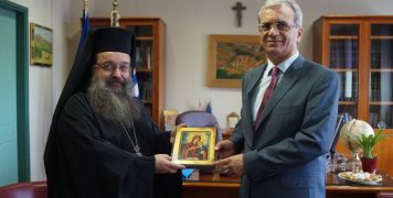 Ο μητροπολίτης Χίου ευλόγησε τους περιφερειακούς συμβούλους και το προσωπικό της ΠΕ ενώ χάρισε συμβολικά μια εικόνα της Παναγίας στον Παντελή Μπουγδάνο.