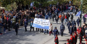 Με σύμμαχο μόνο τον καιρό την «παράσταση έκλεψε» η μεγάλη σημαία, που δεν μπόρεσε λόγω καιρού να αναρτηθεί την παραμονή στον Νότιο Λιμενοβραχίονα και που άνοιξε την παρέλαση στα χέρια των σπουδαστών της Ακαδημίας Μηχανικών.