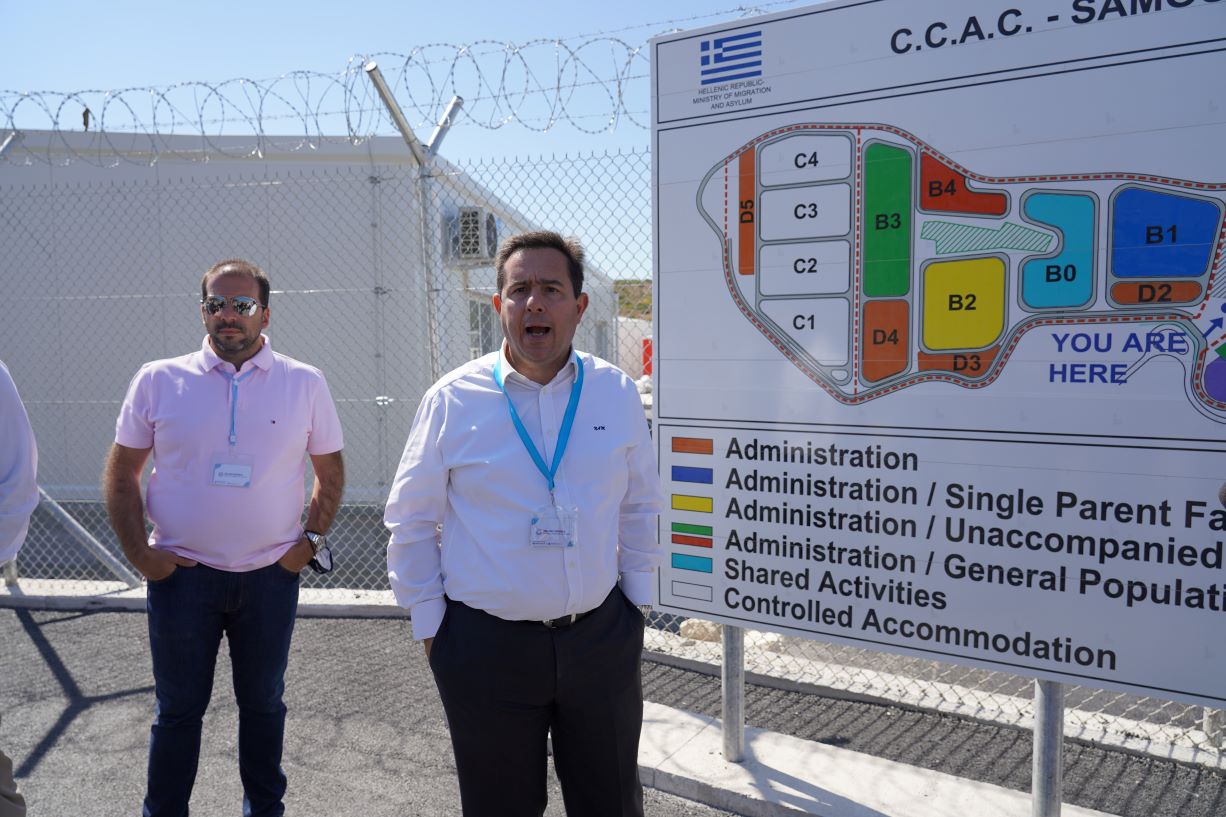Με την ευχή οι εργαζόμενοι στη δομή να είναι περισσότεροι από τους φιλοξενούμενους έκλεισε σήμερα την ξενάγηση των δημοσιογράφων στην νέα δομή της Σάμου ο υπουργός μετανάστευσης και ασύλου Νότης Μηταράκης.