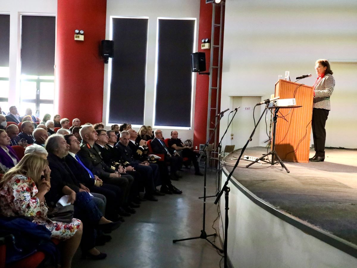 Κατά τον χαιρετισμό του, τόνισε μεταξύ άλλων τη σημασιολογία των επισκέψεων των τελευταίων ετών της Προέδρου της Δημοκρατίας και του Υπουργού Άμυνας στη Χίο για τους εορτασμούς της Απελευθέρωσης του νησιού, σημειώνοντας ότι οι επισκέψεις αυτές “στέλνουν ένα πάρα πολύ ισχυρό μήνυμα θωράκισης των νησιών του Αιγαίου, ενίσχυσης και απόλυτης στήριξης της ελληνικής κυριαρχίας απέναντι σε οποιαδήποτε ρητορική που κατά καιρούς επιχειρείται. Η χώρα μας με βάση το Διεθνές Δίκαιο πάντα στηρίζει και ενισχύει την άμυνα της χώρας”.