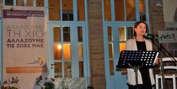 Με τα παραπάνω λόγια έκλεισε την χθεσινή κεντρική προεκλογική της ομιλία στην πλατεία του Κάστρου, η υποψήφια Δήμαρχος Χίου, επικεφαλής της «Χιακής Συμπολιτείας», Ερμιόνη Φρεζούλη.
