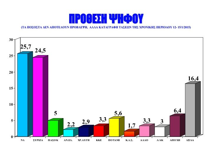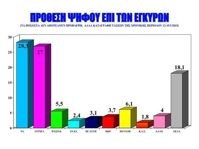 Νέα Δημοκρατία και ΣΥΡΙΖΑ δίνουν μάχη στήθος με στήθος για την πρωτιά στο νησί μας. Αυτό προκύπτει και από τη δεύτερη δημοσκόπηση της εταιρείας Alco που διενεργήθηκε για λογαριασμό της «Αλήθειας» και δημοσιεύεται στο σημερινό της φύλλο. Όπως όλα δείχνουν η πρωτιά θα «παίζεται» μέχρι και την Κυριακή των εκλογών, καθώς η Νέα Δημοκρατία προηγείται του ΣΥΡΙΖΑ με διαφορά μόλις 1,3% επί των εγκύρων (28,3% έναντι 27%). H δεύτερη δημοσκόπηση πραγματοποιήθηκε μετά την ανακοίνωση των συνδυασμών από τα δύο μεγάλα κόμματα. Η έκπληξη εστιάζεται στη μάχη για την τρίτη θέση, την οποία φαίνεται να αγκαλιάζει το "Ποτάμι" του Στ. Θεοδωράκη με ποσοστό 6,1%. Στην τέταρτη θέση βρίσκεται το ΠΑΣΟΚ με 5,5%, και ακολουθεί το ΚΚΕ με 3,7%. Αξιοσημείωτο είναι το γεγονός ότι το ποσοστό των αναποφάσιστων ψηφοφόρων (18,1%)παραμένει υψηλό, παρά το ότι είμαστε μία εβδομάδα πριν τις εκλογές.