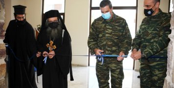 Εν συνεχεία μετά από πρόσκληση του κ. Αρχηγού ο Σεβ. Χίου μετέβη και ετέλεσε τον Αγιασμό των εγκαινίων του νέου χώρου της Λέσχης Αξιωματικών της 96ης ΑΔΤΕ.