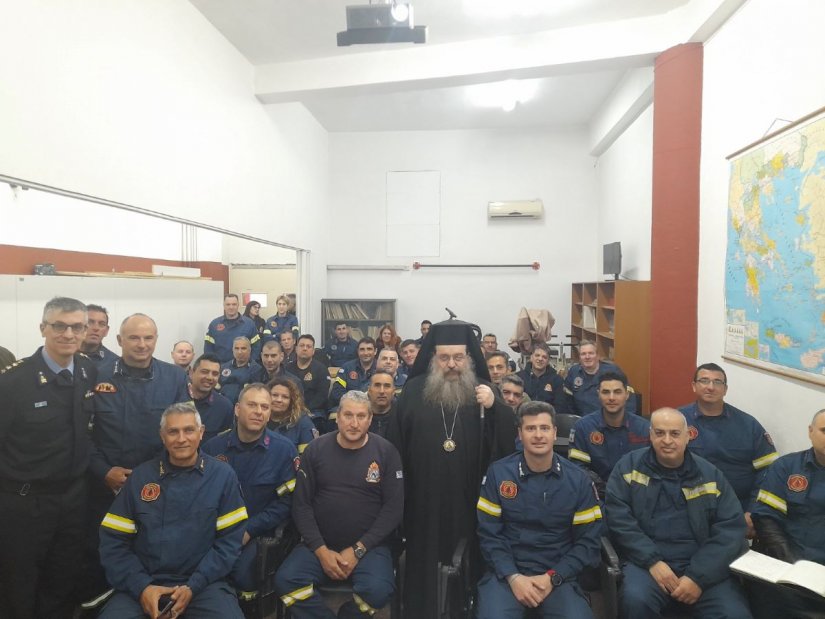 Ἐν συνεχείᾳ ὁ Σεβασμιώτατος μίλησε στούς ἄνδρες τῆς Πυροσβεστικῆς Ὑπηρεσίας Χίου λέγοντας: «Εἶμαι περήφανος γιατί ἔχουμε στή Χίο τούς καλύτερους πυροσβέστες τῆς Ἑλλάδος. Ὅλη ἡ κοινωνία τῆς Χίου ἀναγνωρίζει τό ἔργο σας. Σᾶς εὐγνωμονοῦμε καί σᾶς συγχαίρουμε γιά τίς προσπάθειές σας καί τήν ἀποτελεσματικότητά σας. Εἶσθε οἱ καλύτεροι!».