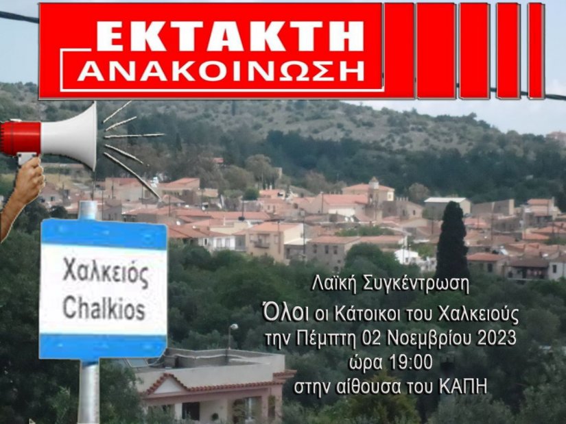 Αναφερόμαστε στους κατοίκους του Χαλκειούς, που πραγματοποιούν για τον σκοπό αυτό και όχι μόνο Λαϊκή Συνέλευση με βάση την παρακάτω πρόσκληση: