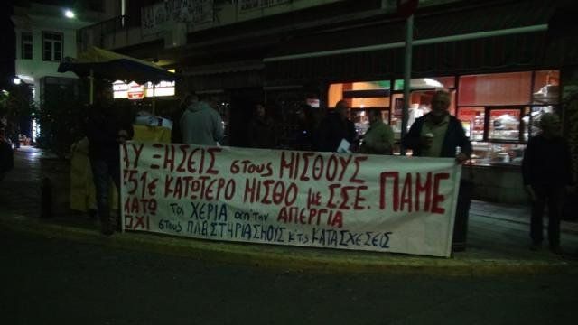 Συγκέντρωση- πικετοφορία πραγματοποίησε το ΠΑΜΕ στην είσοδο της Απλωταριάς το απόγευμα της Πέμπτης.