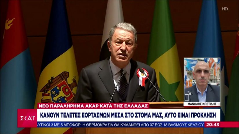 Την ρητορική των προκλήσεων εξακολουθεί να χρησιμοποιεί η Άγκυρα, με τον Χουλουσί Ακάρ να κάνει λόγο για «τελετές εορτασμών μέσα στο στόμα της Τουρκίας».