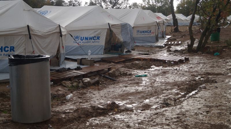 Βουτηγμένοι στα λύματα και τη λάσπη βρίσκονται 400 περίπου μετανάστες - πρόσφυγες, που διαμένουν στις σκηνές, που άγνωστον ποιός, είχε την φαεινή ιδέα να τοποθετήσει κάτω από τα ουρητήρια του σταθερού καταυλισμού της ΒΙΑΛ (!) και μέσα σε ένα χωράφι - βάλτο.