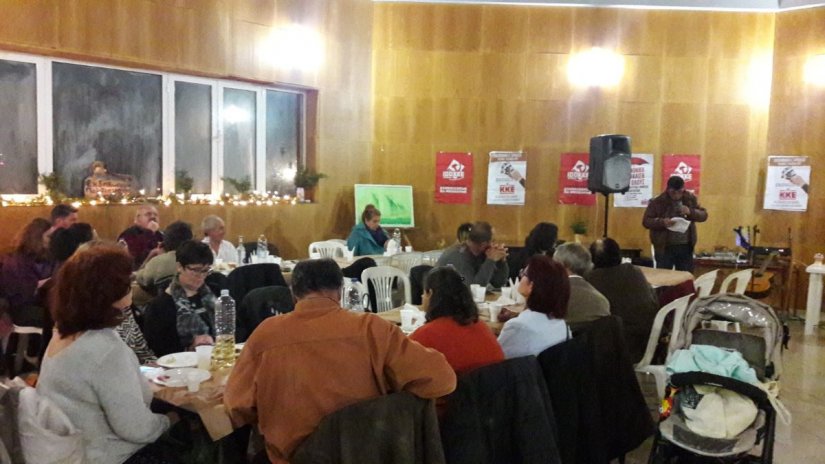"Εκ μέρους της ΤΟ Χίου του ΚΚΕ θα θέλαμε να σας καλωσορίσουμε και να σας ευχαριστήσουμε όλους για την εθελοντική προσφορά και τη βοήθειά σας για να πραγματοποιηθεί η σημερινή μας εκδήλωση. Σήμερα, βάζουμε άλλο ένα λιθαράκι στην προσπάθεια που κάνει η οργάνωσή μας από τις αρχές του Νοέμβρη να ανταποκριθεί στη δίμηνη οικονομική εξόρμηση Νοέμβρη – Δεκέμβρη του 2019.