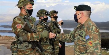Ο Αρχηγός ΓΕΕΘΑ συνοδεύεται από τον Διοικητή της ΑΣΔΕΝ Αντιστράτηγο Δημήτριο Χούπη.