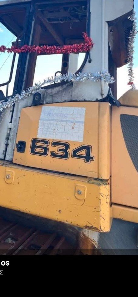 Έτσι, εν όψει εορτών, οι Πυργούσοι στόλισαν με γιορτινές κορδέλες το παρατημένο εδώ και 8 μήνες βαρύ Δημοτικό Μηχάνημα έργων σε μια άκρη του δρόμου στα Βρουλίδια.
