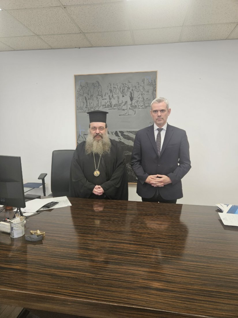 Ο κ. Υφυπουργός ευχαρίστησε τον Χίο Ιεράρχη και είχε μαζί του συζήτηση για πνευματικά θέματα.