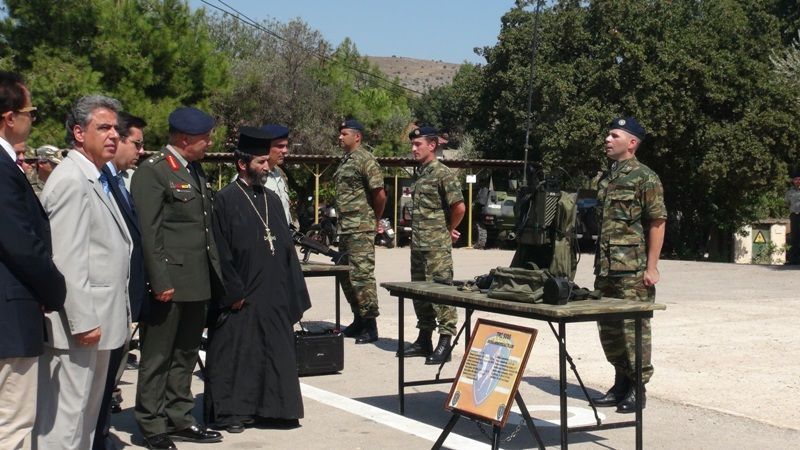 Η τελετή ξεκίνησε με αγιασμό, παρουσία του ταξίαρχου Δημόκριτου Κωνσταντάκου, του βουλευτή Νότη Μηταράκη και του αντιπεριφερειάρχη Χίου Σταμάτη Κάρμαντζη, ενώ αμέσως μετά ακολούθησε επίδειξη των οπλικών συστημάτων στους προσκεκλημένους.