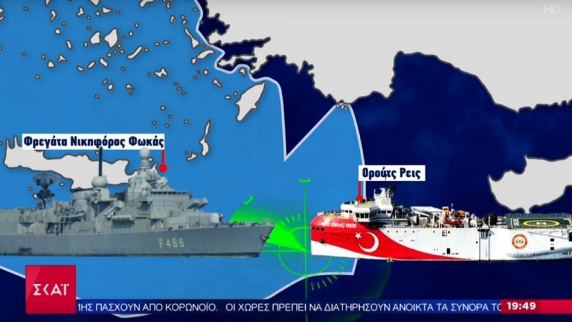 «Σκιά» του τουρκικού σκάφους, έγινε από την πρώτη στιγμή η ελληνική φρεγάτα Νικηφόρος Φωκάς, που παρακολουθεί τις κινήσεις του και στέλνει ζωντανά εικόνα στο Κέντρο Επιχειρήσεων.