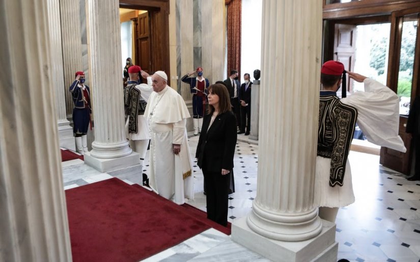 Ως εδώ δεν έχουμε καμία ένσταση. Απεναντίας η κ. Σακελλαροπούλου έπραξε ό,τι επιτάσσει η φιλοξενία σε σχέση με την θεσμική της θέση. Τήρησε το πρωτόκολλο ως οικοδέσποινα που υποδέχθηκε τον ομόλογό της, Πρόεδρο του κρατιδίου του Βατικανού.