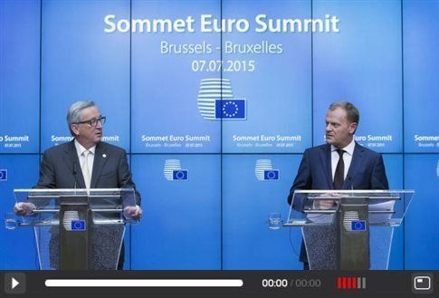 Η κρίσιμη Σύνοδος Κορυφής της Ευρωζώνης για την Ελλάδα, την Τρίτη, ολοκληρώθηκε λίγο μετά τις 11 το βράδυ. Ακολούθησε συνέντευξη Τύπου του προέδρου της Ευρωπαϊκής Επιτροπής Ζαν Κλοντ Γιούνκερ και του προέδρου του Ευρωπαϊκού Συμβουλίου Ντόναλντ Τουσκ για τα αποτελέσματα της Συνόδου.
