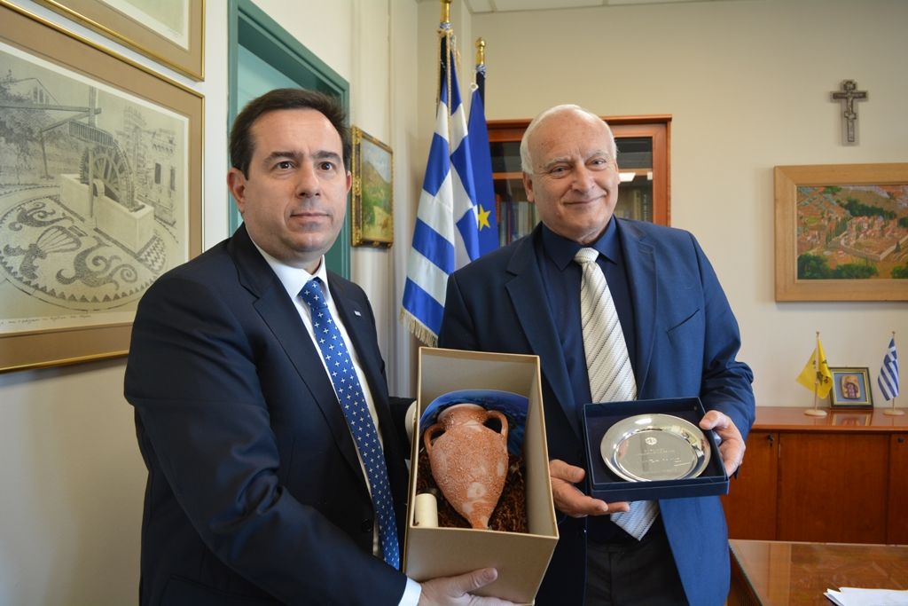 Να σημειώσουμε ότι ο κ Μηταράκης επισκέφτηκε την Περιφερειακή Ενότητα προκειμένου να ευχηθεί στους νέους αντιπεριφερειάρχες, ενώ αντάλλαξε και αναμνηστικά δώρα με τον Παντελή Βρουλή.
