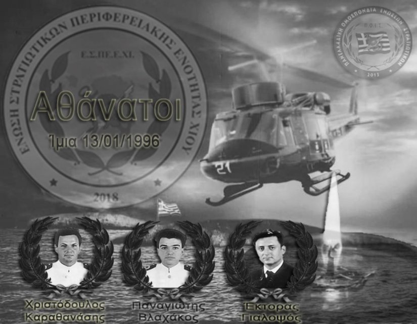 Το ημερολόγιο έγραφε 31 Ιανουαρίου 1996. Σαν σήμερα λοιπόν, πρίν από 27 χρόνια, έφυγαν άδικα από τη ζωή ηρωικά πεσόντες εν ώρα ιερού καθήκοντος υπεράσπισης εδαφικών ακεραιτοτήτων της πατρίδος μας, τα αδέρφια μας, ο υποπλοίαρχος Χριστόδουλος Καραθανάσης, ο υποπλοίαρχος Παναγιώτης Βλαχάκος και ο αρχικελευστής Έκτορας Γιαλοψός.