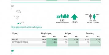 Συνολικά, από τις 13 Περιφέρειες της χώρας, στις 12 είχαμε πτώση στον πληθυσμό, ενώ μόνο σε μία καταγράφηκε αύξηση. Πρόκειται για την Περιφέρεια Νοτίου Αιγαίου, όπου από 309.000 κατοίκους ο πληθυσμός αυξήθηκε σε 324.000.