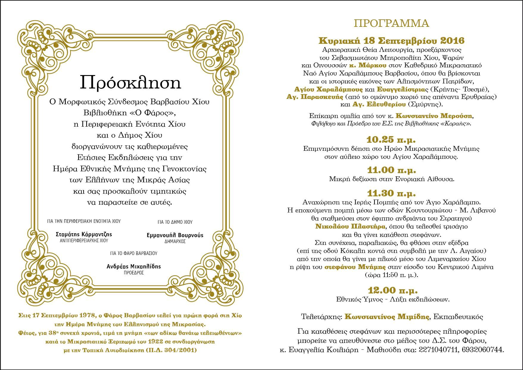 Λεπτομέρειες των εκδηλώσεων στη φωτογραφία της πρόσκλησης.
