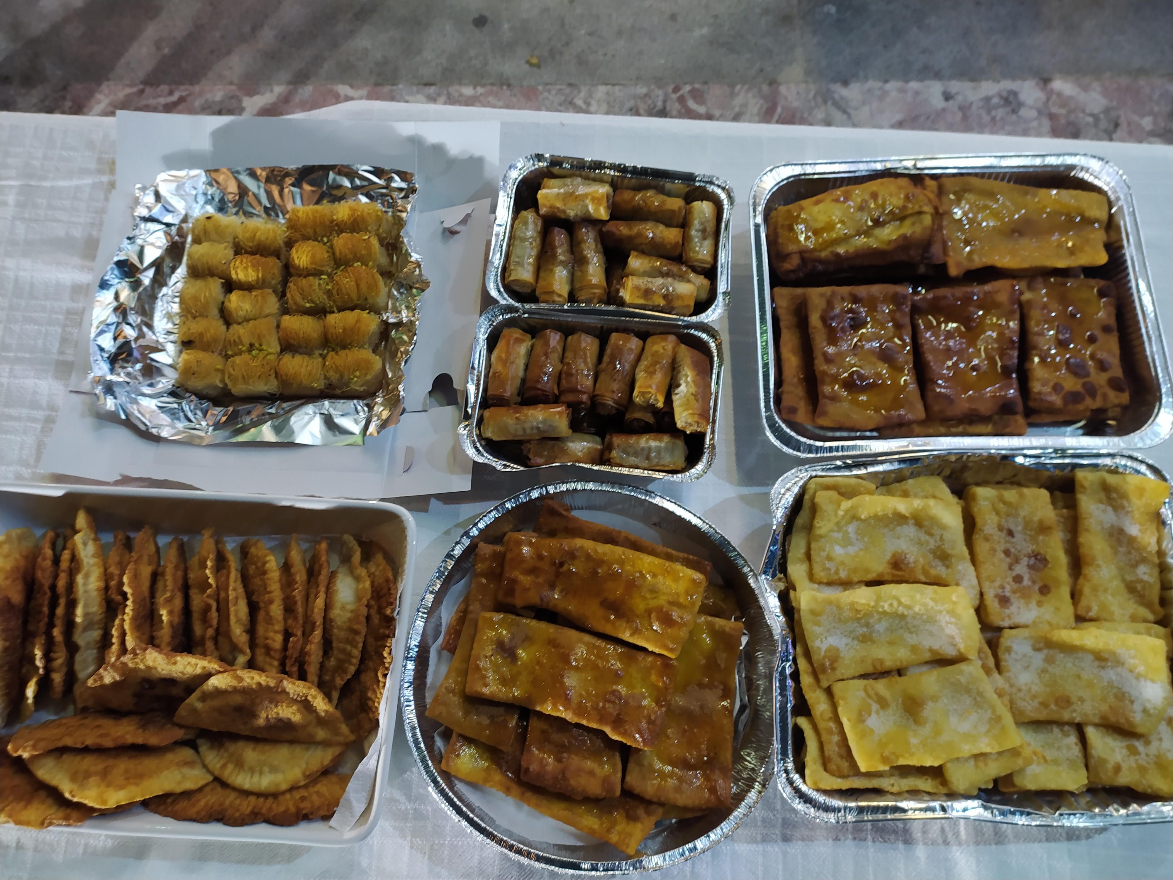 Στο τέλος κεράστηκαν   όλοι με τις παραδοσιακές, μικρασιατικές, γευστικές τυρόπιτες της Τσικνοπέμπτης, Τη σπιτική συνταγή παρέλαβαν από τις γιαγιάδες του  χωριού. Αυτές οι τηγανητές τυρόπιτες τις έφτιαχναν στην περιοχή της Ερυθραίας. Διπλώνονται σαν μαξιλαροθήκες και είναι παρόμοιες με τους γκιουζλεμέδες που έφτιαχναν σε άλλες περιοχές της Μικράς Ασίας, όπως στο Αϊβαλί. Κοπέλες παρουσίασαν αυθεντικές Μικρασιάτικες συνταγές από τις μητέρες τους, για φαγητά και γλυκά,(ραβιόλια με ταμπουρά και ρύζι κ.ά.) με το ιδίωμα της Ερυθραίας Μικράς Ασίας. Φυσικά όλα αυτά με άφθονο κρασί.