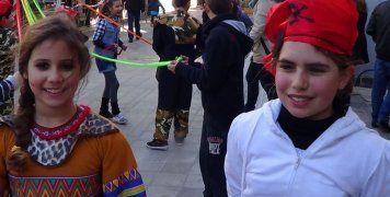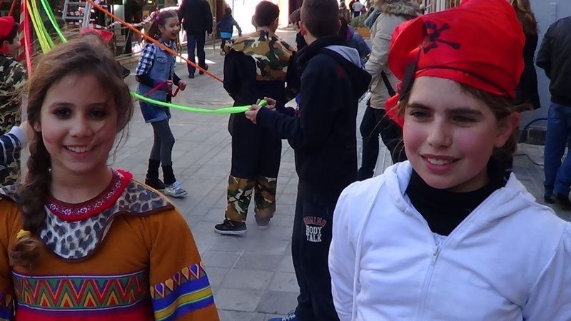 “Το κάνουμε για να δώσουμε κέφι”, μας λέει η Ειρήνη ντυμένη Ινδιάνα και η Ιοκάστη ντυμένη πειρατίνα. “Το κάνουμε όμως και για το έθιμο”.