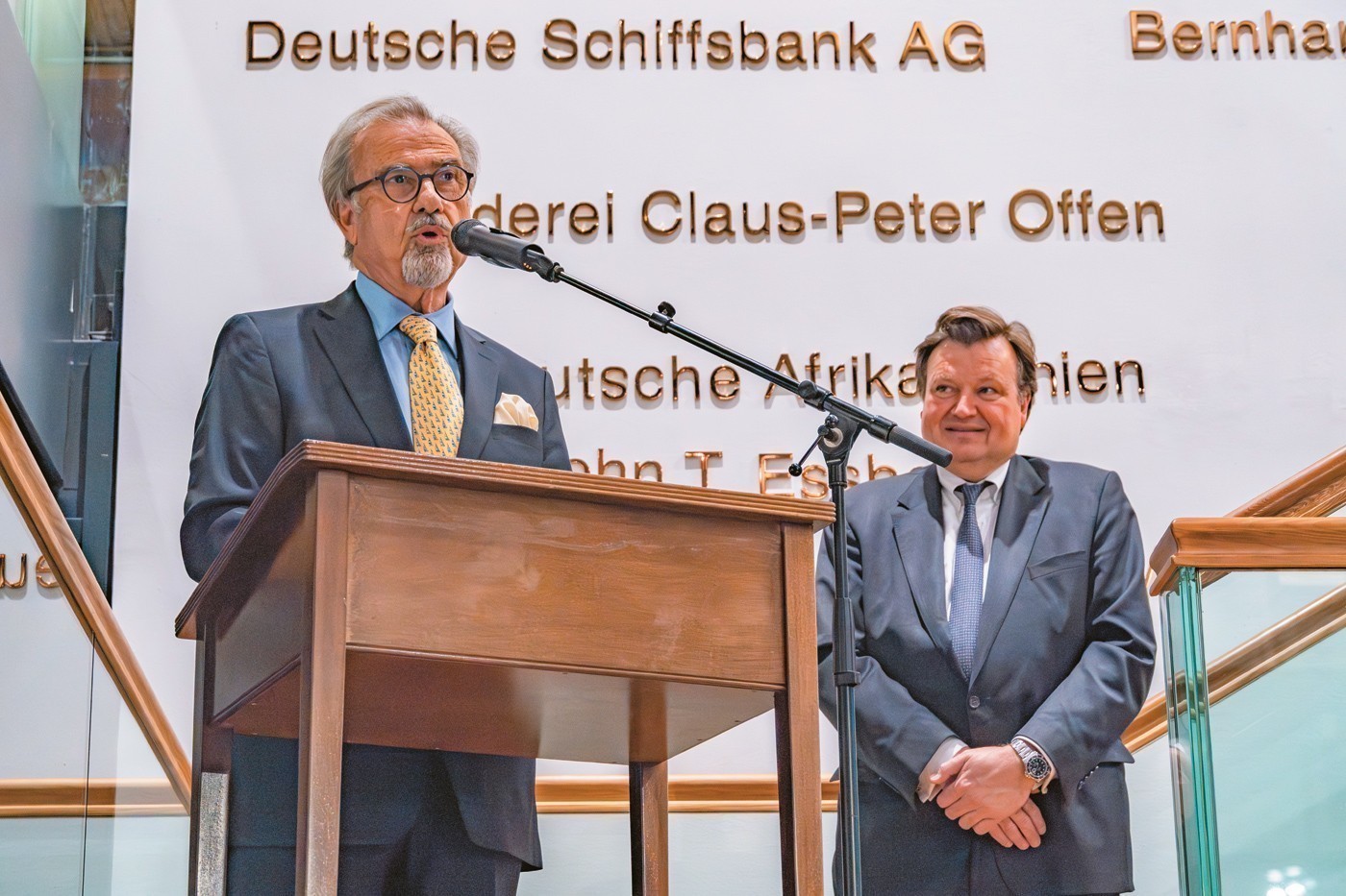 Ανέφερε ότι οι Ελληνες εφοπλιστές, πολλοί από τους οποίους είχαν βιώσει τον πόλεμο και τις δυσκολίες της εποχής, επέλεξαν να στραφούν στη Γερμανία, δημιουργώντας νέες προοπτικές για τον εαυτό τους αλλά και την παγκόσμια ναυτιλιακή κοινότητα. Ο Πίτερ Ταμ υπογράμμισε ότι αυτή η συνεργασία έφερε τους Ελληνες πλοιοκτήτες και τα πληρώματά τους στη γερμανική γη, στα νερά της Βόρειας Θάλασσας και της Βαλτικής, χτίζοντας σχέσεις βασισμένες στην εμπιστοσύνη και τη συνέπεια: «Η συνεργασία αυτή αναπτύχθηκε όχι μόνο σε πολιτικό επίπεδο, αλλά και μέσα από αξίες όπως η αμοιβαία κατανόηση και η αξιοπιστία, μετατρέποντας τη θάλασσα από στοιχείο που χωρίζει σε γέφυρα επικοινωνίας και αλληλεγγύης», είπε.