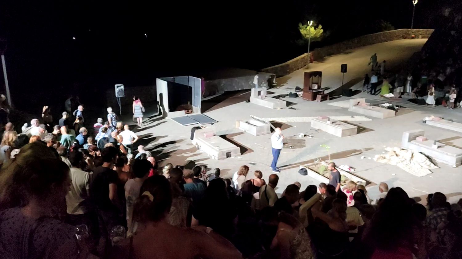 Μικρό αποδείχθηκε το ανοιχτό θέατρο Καρδαμύλων για τον κόσμο που, κάτω από την αυγουστιάτικη πανσέληνο, βρέθηκε το βράδυ του Σαββάτου 9 Αυγούστου 2025, στη βορειοανατολική Χίο προκειμένου να παρακολουθήσει την παράσταση «Οιδίπους – από το σκοτάδι στο φως», σε σκηνοθεσία - απόδοση - διασκευή Γιάννη Χουβαρδά.