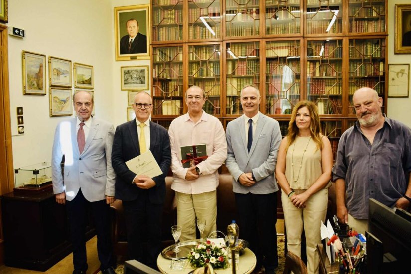 Ο κ. Πρέσβης, στον οποίο επιδόθηκαν ως αναμνηστικά δώρα δύο αντίτυπα εκδόσεων της Βιβλιοθήκης μας, εντυπωσιάστηκε από τον τεράστιο πλούτο των τεκμηρίων της. Υπέγραψε στο βιβλίο διακεκριμένων επισκεπτών και κατά την συζήτηση που επακολούθησε, διατυπώθηκε αμοιβαίως η άποψη ότι υπάρχει η δυνατότητα συνεργασίας σε εκπαιδευτικά και πολιτιστικά θέματα.