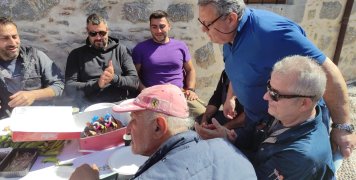 Στην διάρκεια της κοινής τράπεζας έσβησε και τα 59 κεράκια του, ο Αγάς του χωριού Νικόλας Σαραντινούδης, που ως γνωστόν γεννήθηκε στην... ιστορική ημερομηνία 21 Απριλίου 1967.