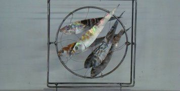 Τα γλυπτά ψαράκια του Νικόλα Χατζή, συνθέσεις με μια μίξη ζωγραφικής και γλυπτικής, είναι μια τέχνη γενναιόδωρη όπως οι μουσικές του Χατζηδάκι, γιατί έχουν να σου δώσουν απλά και αδιόρατα την πιο μεγάλη χαρά της τέχνης, όπου απουσιάζει κάθε είδους ναρκισσισμός ή επίδειξη δεξιοτεχνίας και ανασυντίθεται φυσικά μπροστά σου ένας κόσμος χρωμάτων, ρυθμών και ήχων που είναι όμως έτσι συναρμολογημένος σαν να είναι ολότελα για σένα τον ίδιο που τα βλέπεις και, ταυτόχρονα, για όλους -όπως και στη φύση-, μια γνήσια αναπαράσταση των μυστικών δυνάμεων που ορίζουν και δίνουν υπόσταση στο πιο πολύτιμο μας στοιχείο, το πνευματικό».