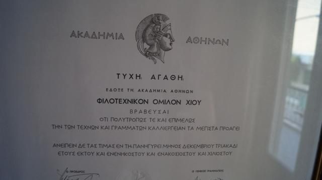 Έτσι γεννήθηκε ο Φιλοτεχνικός Όμιλος Χίου, που για δεκαετίες ολόκληρες και σε δύσκολα χρόνια αποτέλεσε τον μοναδικό πνευματικό φάρο του νησιού, τον μοναδικό φορέα πνευματικών καλλιτεχνικών εκδηλώσεων ενώ από τη θέση του Προέδρου του πέρασαν πολλές από τις πιο εξέχουσες πνευματικές προσωπικότητες του νησιού.