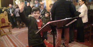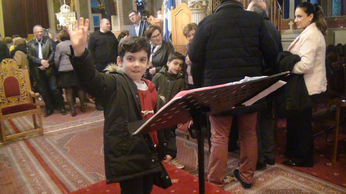 Με την ολοκλήρωση της εκδήλωσης, ένα από τα μικρά παιδιά που παρακολούθησαν την απόδοση των ύμνων από τη χορωδία της και προφανώς ενθουσιασμένο από τη ,αέστρο και τα τεκταινόμενα, πλησίασε το αναλόγιο με τα μουσικά κείμενα και τις νότες, ανέβηκε στο βάθρο και σαν ένας μικρός νεαρός μαέστρος δοκίμαζε με τις κινήσεις των χεριών του τη μαεστρική του ''ακτινοβολία''!