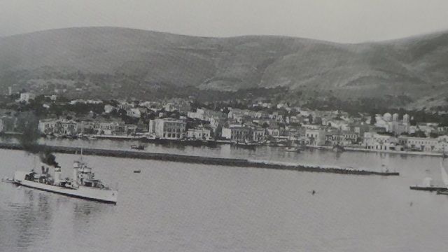Οπως σημειώνεται σε δελτίο τύπου του Ιδρύματος: Η φωτογραφία είναι του 1927, με λήψη από τον Σ. Χαρτουλάρη όπως καταγράφεται στο δεξιό άκρο της. Πρόκειται για μία ημέρα κατά την οποία ναυλοχούσαν έξω από το λιμάνι πολεμικά πλοία έτσι όπως φαίνονται στη φωτογραφία. Κατά πάσα πιθανότητα η φωτογραφία ελήφθη από τον ιστό κάποιου από αυτά. Η ημέρα πρέπει να είναι η 19η Ιουνίου 1927 κατά την οποία έγιναν τα αποκαλυπτήρια του ανδριάντα του Κωνσταντίνου Κανάρη στον δημοτικό κήπο. Στο αριστερό άκρο της αρχέτυπης φωτογραφίας υπάρχει αφιέρωση προς τον Ι. Ναό του Αγίου Γεωργίου Βροντάδου, με υπογραφή «Κωστάλας» στη μνήμη του αδελφού του Μαρκέλλου Δήμου Κωστάλα.