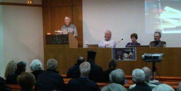 Η δημοσιογράφος Ευγενία Ασλανίδου που συντόνισε την παρουσίαση του βιβλίου και τις εισηγήσεις των ομιλητών, διάβασε τον χαιρετισμό του επιχειρηματία και συγγραφέα Αριστείδη Μπελλέ που με την οικονομική του συνεισφορά στήριξε την έκδοση του βιβλίου. Η κ. Ασλανίδου αντικρύζοντας τον πολύ κόσμο στην αίθουσα και... γνωρίζοντας και συναισθανόμενη το συγκεντωμένο και πνευματικό συγκραφικό μωσαίκό του βιβλίου που παρουσιάστηκε, είπε ότι ''ενόψει της 28ης Οκτωβρίου, τουλάχιστον πνευματικά, σίγουρα την έχουμε θωρακίσει τη Χίο''...