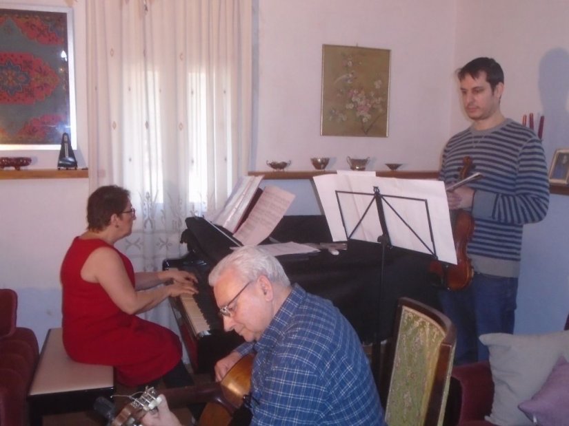 Τη συνοδεύουν ο Φώτης Πέζος με το βιολί του και Κώστας Λημναίος με την κιθάρα του ενώ προβάλλονται και αποσπάσματα από συναυλίες της Χορωδίας Χίου.