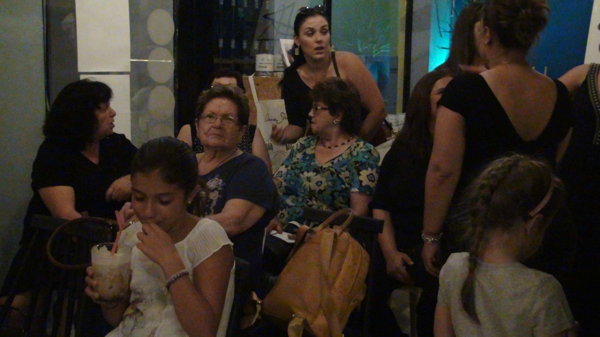 Οι γονείς του και οι δυο αδελφές του, τον καμάρωσαν με χαμόγελα να υπογράφει βιβλία και να δέχεται τα θερμά συγχαρητήρια του κοινού για το βιβλίο του.