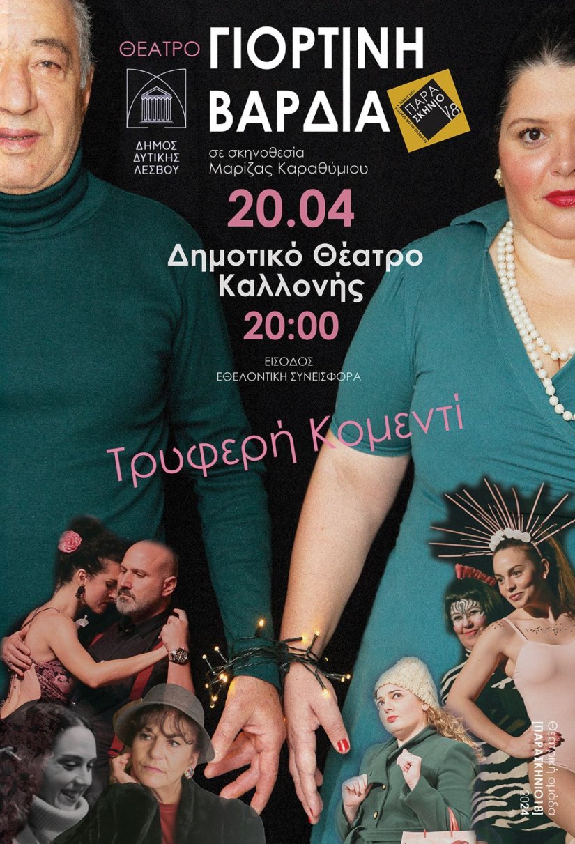 Μετά από πρόσκληση από τον Δήμο Δυτικής Λέσβου, η θεατρική παράσταση "Γιορτινή Βάρδια" θα ανέβει στο Δημοτικό Θέατρο Καλλονής, το Σάββατο 20 Απριλίου 2024 στις 8.00 μ.μ.