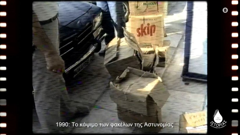 Τέλος με επιστροφή σε ένα ντοκουμέντο. Βρισκόμαστε στο 1980 και παρακολουθούμε το ρεπορτάζ με τo κάψιμο των φακέλων κοινωνικών δρονημάτων των πολιτών, της Ασφάλειας.