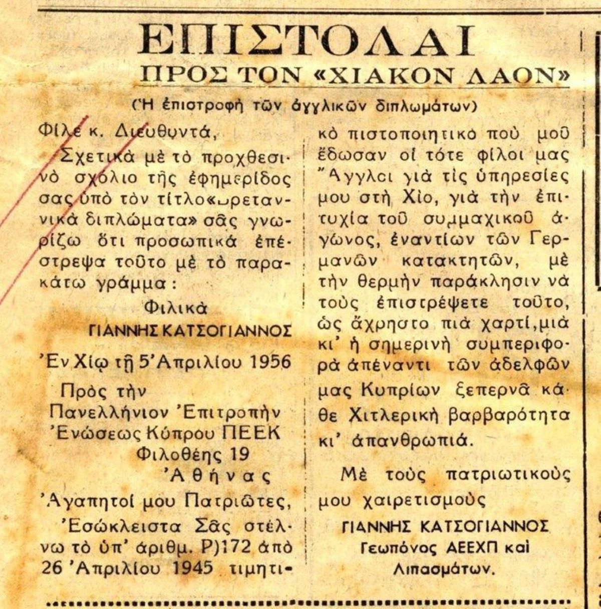 Ο Κυπριακός λαός ξεσηκώθηκε κηρύσσοντας γενική απεργία και οργανώνοντας μαζικές διαδηλώσεις, ενώ σε κάθε γωνιά της Ελλάδας, αλλά και στη Χίο οι πλατείες δονήθηκαν απ’ τις παλλαϊκές κινητοποιήσεις, με επικεφαλής κυρίως της νεολαίας,(το Γυμνάσιο της πόλης σταμάτησε τα μαθήματα και οι μαθητές συνέρρευσαν στην Απλωταριά και την πλατεία) πού έδιναν το στίγμα της αντιιμπεριαλιστικής στάσης του λαού.