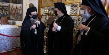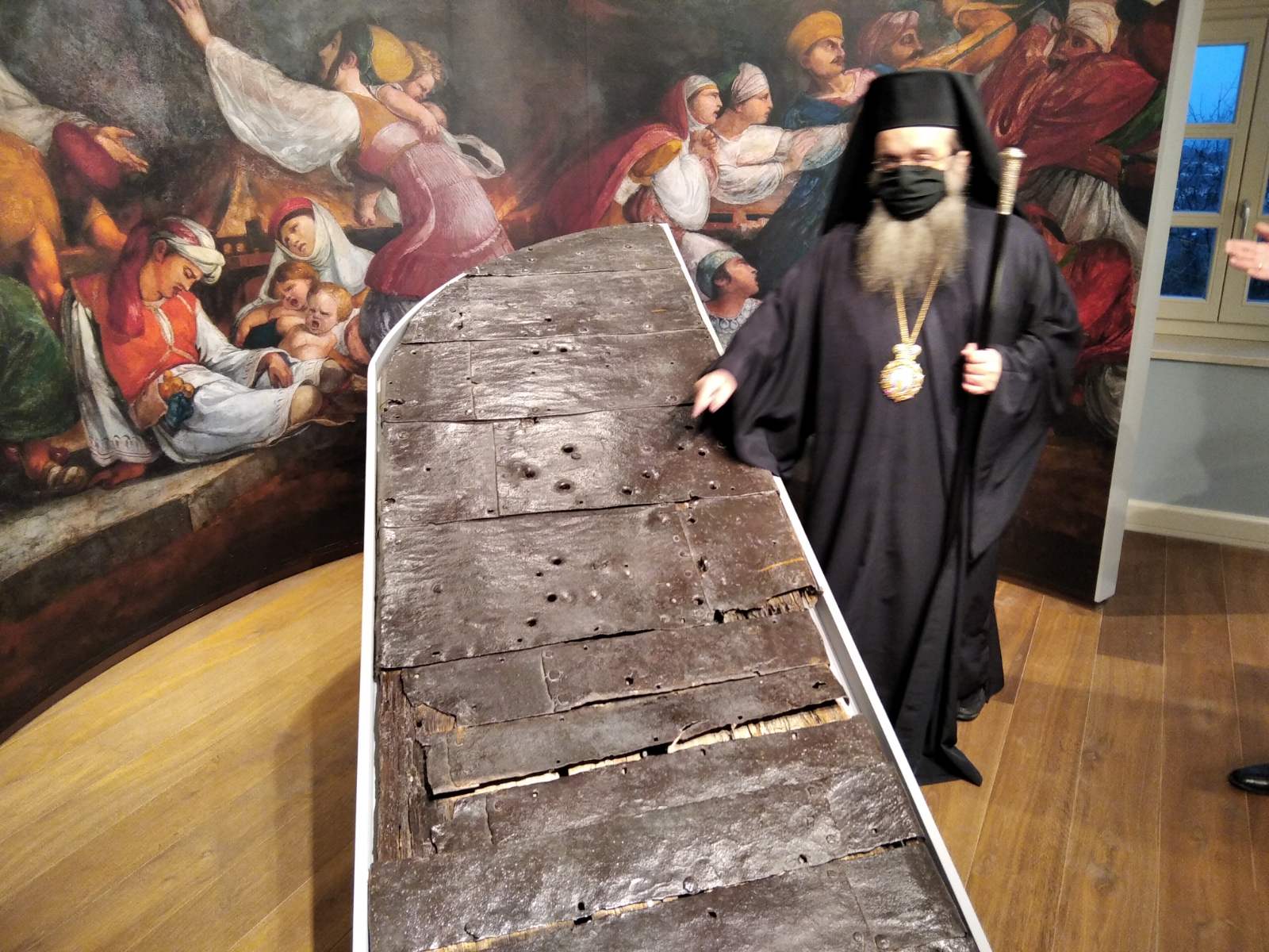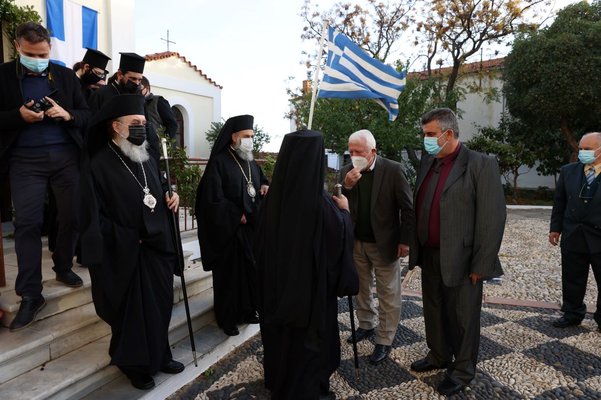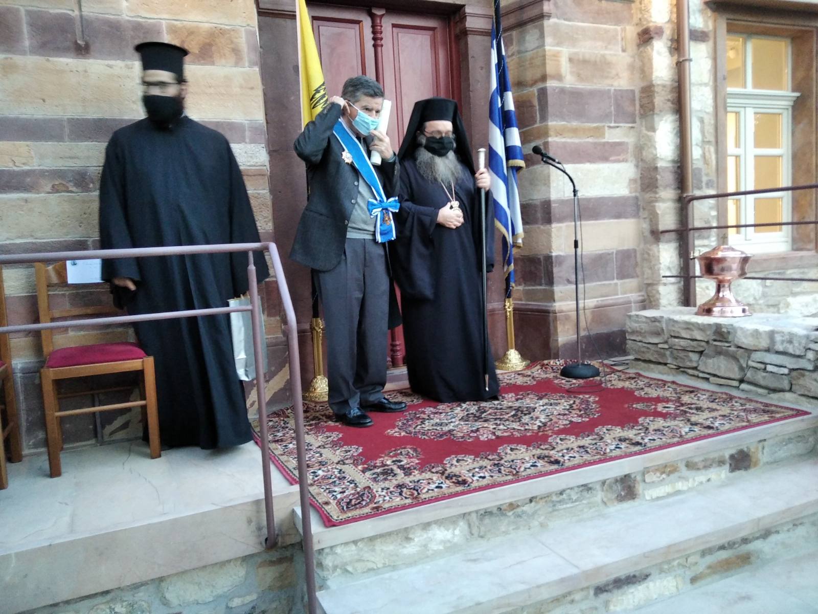 Παρουσία του δωρητή, Διοικητή του Αγίου Όρους Αθανάσιου Μαρτίνου και της συζύγου του, ο Μητροπολίτης Χίου κ. Μάρκος τιμώντας τον με τον Σταυρό του Αγίου Ισιδώρου και σε μια εμπνευσμένη ομιλία του, ξενάγησε τους παρευρισκόμενους στην Έκθεση που θα έχει πιά μόνιμο χαρακτήρα και στεγάζεται στην ανακαινισμένη Αίθουσα Αγιογραφίας.