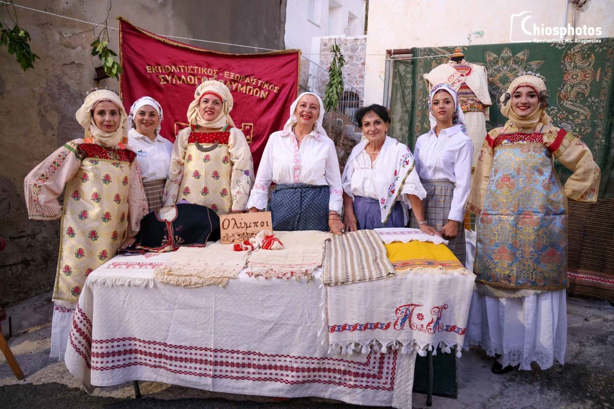 Οι επισκέπτες είχαν την ευκαιρία να περιηγηθούν στα δαιδαλώδη στενά και καλντερίμια του χωριού, να γευτούν ντόπια προϊόντα και χειροποίητα εδέσματα με μαστίχα, όπως λικέρ Μαστίχας, σούμα, λουκούμια μαστίχας και πολλά άλλα που αποτελούν παραδοσιακές συνταγές κάθε χωριού και να ενημερωθούν για τα παραδοσιακά επαγγέλματα.