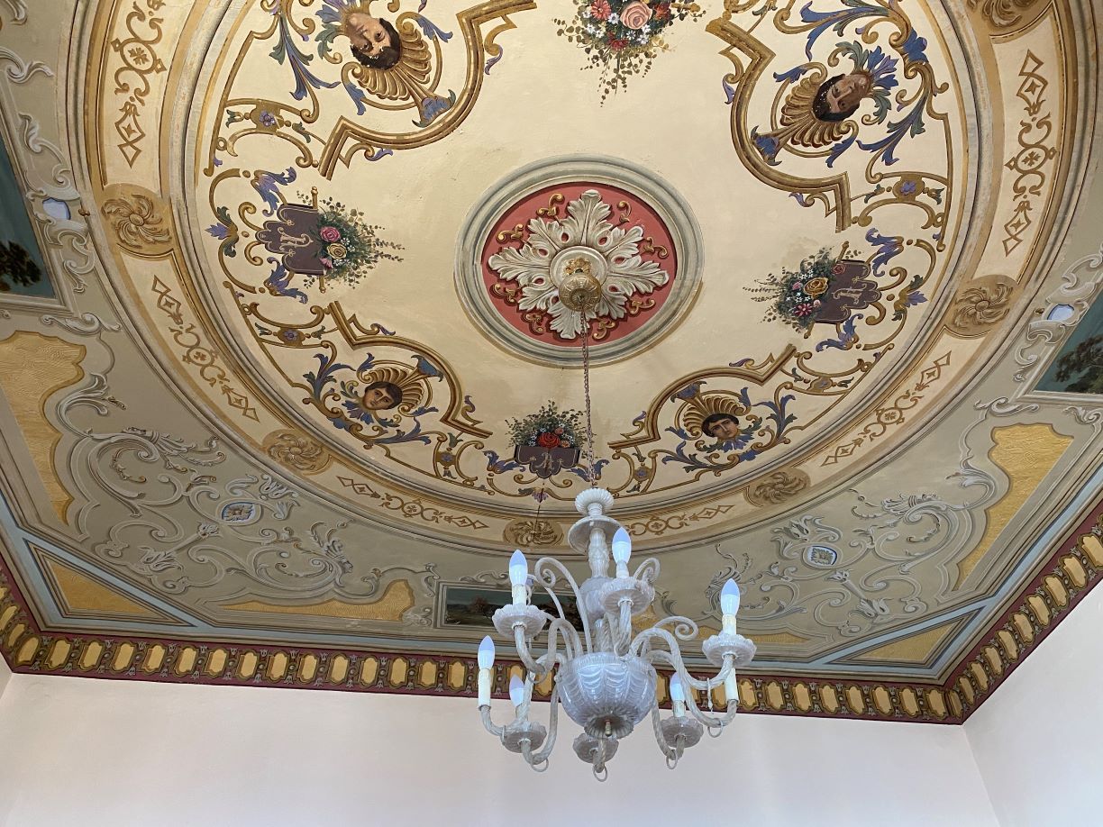 Χαρακτηριστικά του, η πρόσοψη από ανάγλυφη κόκκινη πέτρα Κορακάρη, τα ζωγραφιστά ταβάνια και η μαρμάρινη σκάλα, που οδηγούσε στον δεύτερο όροφο, γιατί ο τρίτος και το γειτονικό κτίσμα είναι νεότερη προσθήκη.