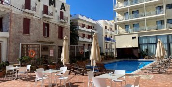 Ξενοδοχεία βεβαίως υπάρχουν πολλά στο νησί, αλλά τα κατ’ εξοχήν δύο και αρχαιότερα είναι γειτονάκια και τα χωρίζει μια οδός αυτή της Ευγενίας Χανδρή.