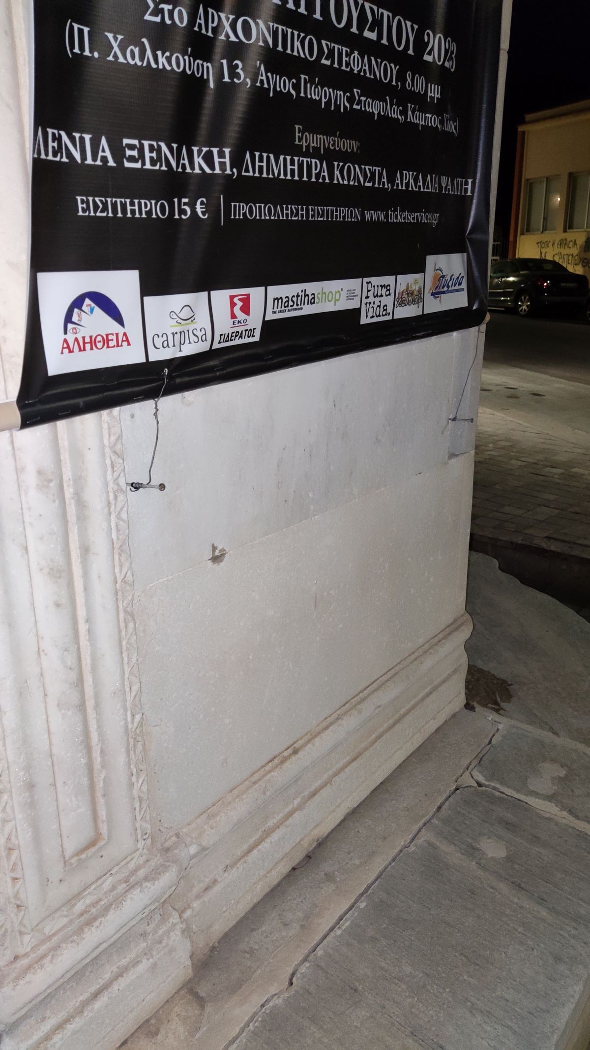 "Αγαπητή "Αλήθεια", με μεγάλη μου έκπληξη προ ολίγου διαπίστωσα ότι στη βρύση του Μελέκ Πασά έχει αναρτηθεί διαφήμιση πολιτιστικής εκδήλωσης, δεν πίστευα στα μάτια μου δε, όταν είδα ότι η ανάρτηση έχει γίνει με τοποθέτηση καρφιών στα κενά των μαρμάρων, δεν υπήρξε κανείς να τους σταματήσει εκείνη την ώρα;