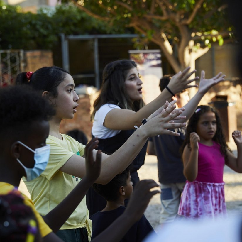 Παιδιά και ενήλικες πρόσφυγες, παρέα με ντόπιους μικρούς και μεγάλους, θα «λύσουν, θα δέσουν και θα γυρέψουν ρυθμούς», σε μια πολυπολιτισμική μουσική εμπειρία.