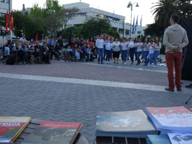 Στη διάρκεια του Φεστιβάλ τα μέλη της ΚΝΕ και του ΚΚΕ καλούσαν με ανακοινώσεις στην Πρωτομαγιάτικη απεργία της Δευτέρας στις 10.30 π.μ. στην Πλατεία.
