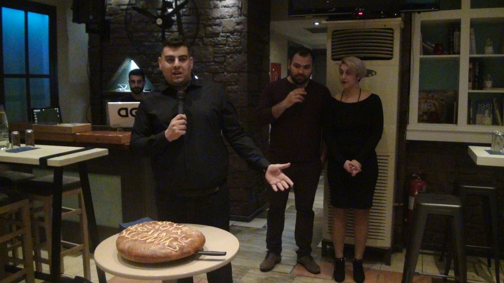 Ο Αντιπρόεδρος του "Συλλόγου Ποντίων Χίου", Αναστάσιος Σαλπιγγίδης, έκοψε την καθιερωμένη βασιλόπιτα με την γραμματέας του συλλόγου, Μαρία Μουζενίδου, την ταμία, Μελίνα Λαμπριανίδου και τον Αστέριο Σαλτσίδη, μέλος του διοικητικού συμβουλίου, μοίρασαν τα κομμάτια στους παρευρισκομένους και φρόντισαν για την καλή και όμορφη διεξαγωγή της εκδήλωσης, μαζί με τη διεύθυνση και το προσωπικό του cafe bar ''Epsilon''.