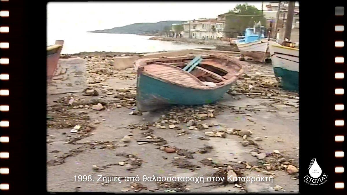 Στην ίδια εκπομπή πάμε πίσω μερικά χρόνια, στο 1998, όταν μια άγρια Νοτιά βγάζει έξω τη θάλασσα στον Καταρράκτη. Οι ζημιές είναι μεγάλες. Ψαράδες και κάτοικοι μιλούν στην Ειρήνη Αναγνώστου ενώ στην κάμερα αλλά και τις… ερωτήσεις είναι ο Ευθύμης Κλήμης.